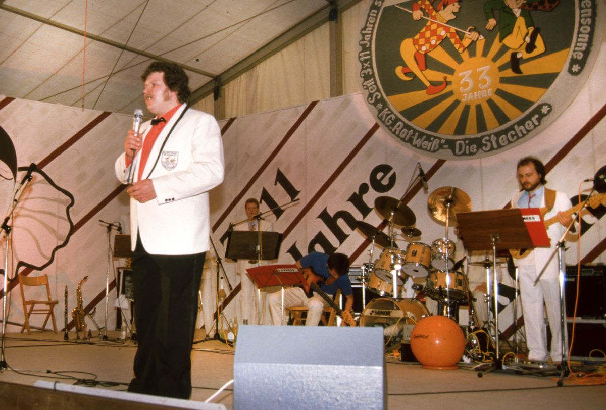 So insgeheim fragten sich die Verantwortlichen des Vereins : "was kann der große Star Chris Roberts noch draufsetzen, damit er das Publikum für sich gewinnen kann". Mit ihm war ein Star auf den Brettern, die die Welt bedeuten, der durch seine gefällige und sympathische Art das Publikum noch einmal zu Stimmung motivieren konnte. Er bot mit seinem Song "Du sag einfach Du" dem ganzen Zeltbesuchern ein freundschaftliches Verhältnis an. Der Könner und Schlagerstar präsentierte seine bekannten Lieder wie "wann liegen wir uns wieder in den Armen Barbara". Begeisterter Beifall zwang auch ihn zu mehreren Zugaben, die er gerne gab. Ganz besonders begehrt waren die Autogramme die nach der Veranstaltung verteilt wurden. Die Verantwortlichen der KGR waren froh bei der Auswahl der Künstler eine so glückliche Hand gehabt zu haben, dass alle Gäste des Abends das nicht ganz gefüllte Zelt begeistert verliesen.
