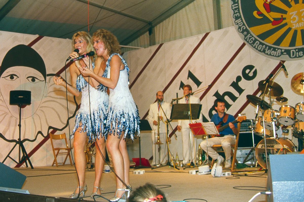 Der eigentliche Höhepunkt des Abends kam mit Botho Lucas und den Euro-Cats. Der bekannte Chorleiter begleitete die Gesangsgruppe am Synthesizer. Die Stimmung die von diesem Gesangsquartett ausging lies auch den letzten begeisterten Zuhörer im Zelt vom Platz aufstehen. Mit Liedern von ABBA und den Beatles sprachen sie mehr die jüngeren Gäste an. Mit Evergreens von Glenn Miller jeden im Zelt. Die ausgeprägte Stimmenausbildung der hübschen Damen wurde ganz deutlich bei ihren A-capela Vorträgen. Dem Publikum gefiel ganz besonders die unkomplizierte und frei von jeglichem Allüren gezeigte Volksnähe. Auf den Tischen der Gäste tanzten und sangen sie sich in die Herzen der Zuhörer. Die gezeigte Show lies erkennen, dieses Quartett hat Erfahrung gesammelt bei Fernseh und auf großen Bühnen. das Zelt brodelte und die Euro-Cats wurden gefeiert, als Meisterinnen der Stimmungsmache.