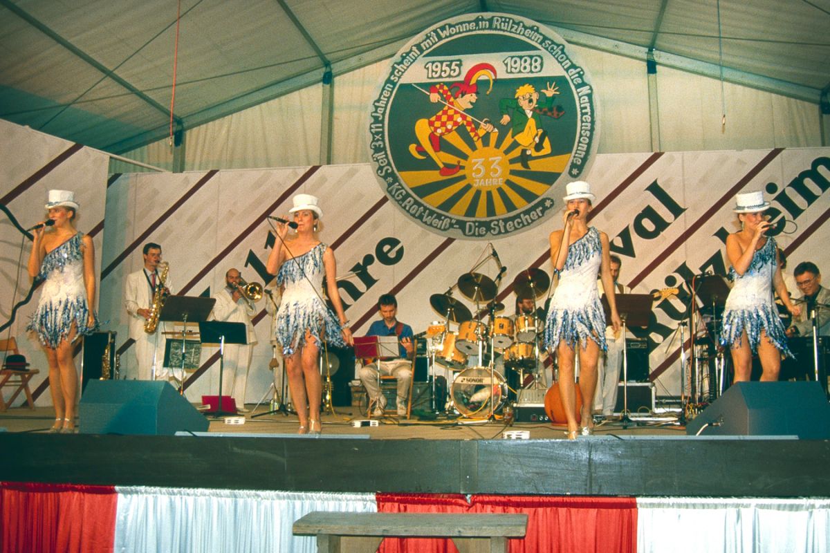 Zum 3x11 jährigen Jubiläum präsentierten sich die Rülzheimer Karnevalisten einmal von einer ganz anderen Seite. In einem großen Festzelt startete die Jubiläumsfeier mit viel Furore. Der lange angekündigte Starabend wurde zu einem besonderen Glanzpunkt.