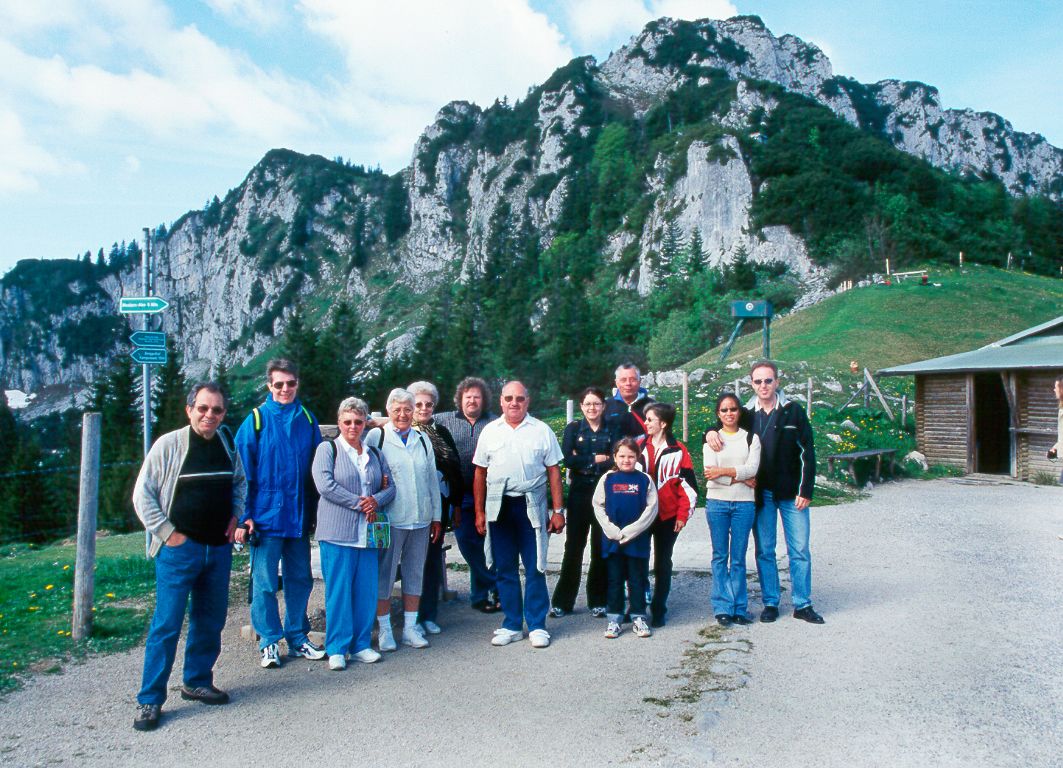 Der nächste Tag hatte nicht nur die Fußball WM als Highlight zu bieten sondern zuerst galt es die Kampenwand mit 1669 Metern zu überwinden. Natürlich ging eine Riesengruppe zu Fuß hoch und nur ein geringer Teil benutzte die Seilbahn. Bei diesem schönen Ausblick am Gipfelkreuz bereute niemand den mühevollen Weg genommen zu haben.