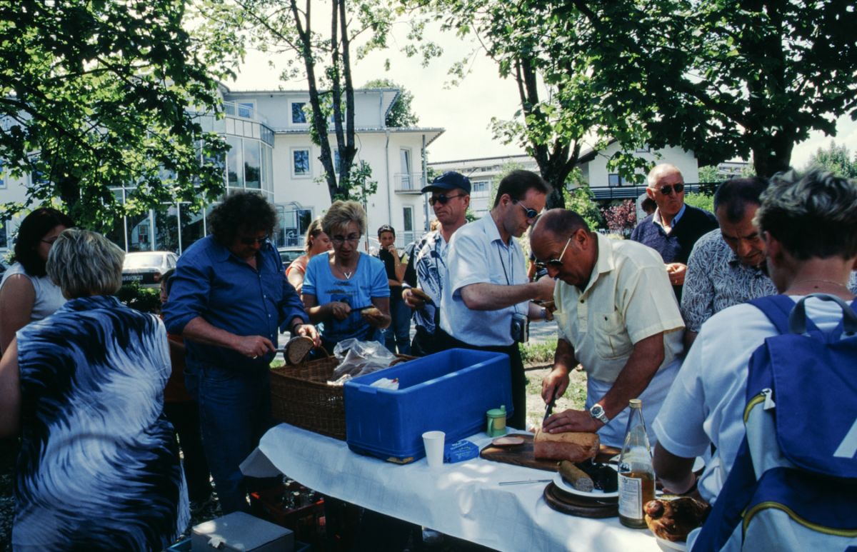 Morgens zur Heimfahrt war wieder alles vereint. Die Kirche und das Kloster von Andechs waren das letzte gemeinsame Ziel des Ausflugs. Kaum jemand fand Interesse an den Haxen Weißwürsten und Bratendüften. Vielmehr wurde der Baustil und die Andacht der barocken Kirche geschätzt. Die einzige Verspätung der ganzen Reise hatten dann auch übereifrige Pilger, die bestimmt einen Rosenkranz zuviel beteten und dadurch den Abfahrtstermin vergeistigt vergaßen. Alles in allem war die Fahrt an den Chiemsee ein besonderes Erlebnis, nicht weil alles ganz besonders war, vielmehr war alles ganz normal, und dies war die Besondernheit. Dank an all die, die mit halfen diesen Ausflug zu dem werden zu lassen was er war: Einfach toll.