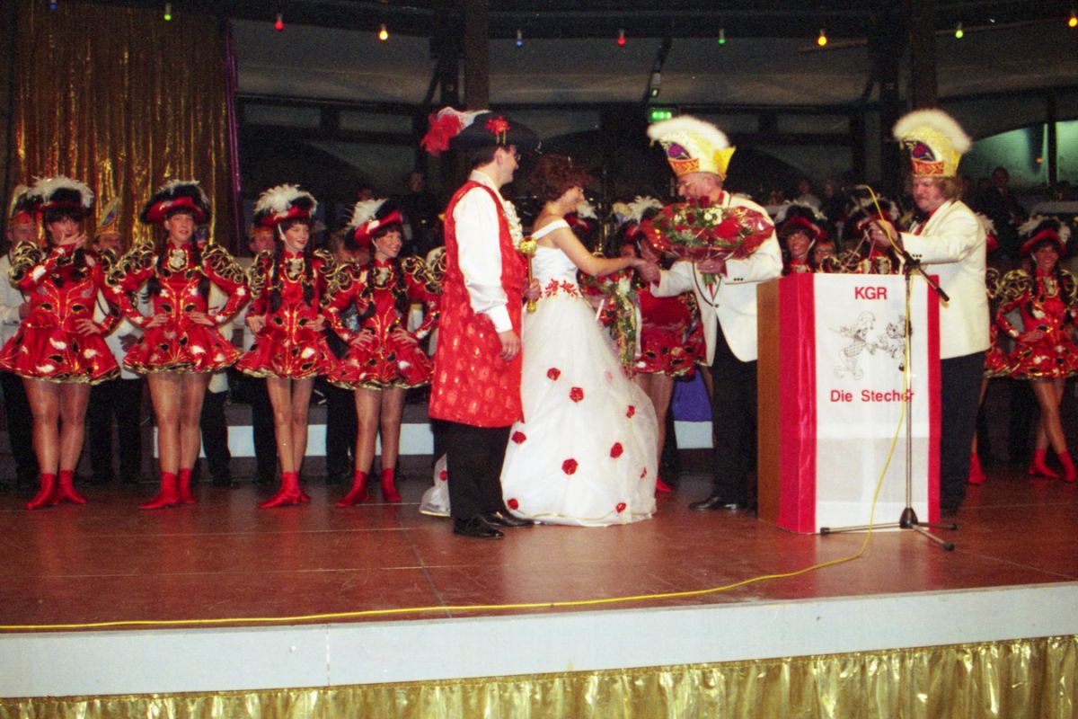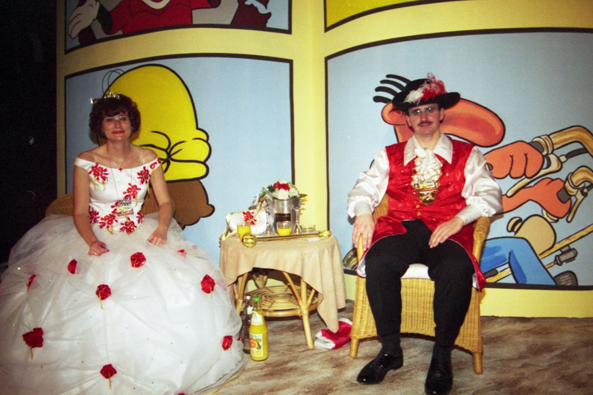 Zuvor musste das zahlreiche Publikum sich bemühen zu erraten, wer denn das Prinzenpaar sei. Sitzungspräsident Kurt Kupper hatte mit seinen wundersamen Rateversen alle genetischen und persönliche Eigenarten des Herrscherpaares in Reim gefasst. Meisterlich erzeugte er Spannung, die erst durch ihn selbst wieder gelöst wurde. Schließlich zog das Prinzenpaar mit seinem gesamten Hofstaat feierlich ein. Die Regenten tragen den hoch offiziellen Namen:
