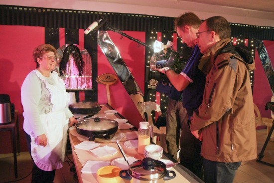 Ein paar Telefonate später war es beschlossene Sache: Das Team kam nach Rülzheim um die „Dampfnudel" als Gebäude und Mehlspeise ins rechte Bild zu setzen. Und natürlich, um bei denen nachzufragen, die gerade in dieser Zeit die „Dampfnudel" (als Gebäude) mit Leben füllen: Den Rülzheimer Karnevalisten. Der Vorsitzende Edi Harder wiederum telefonierte mit den Landfrauen, denn wer sonst kann für den Ort so perfekt unter Beweis stellen, dass die Dampfnudel (als Mehlspeise) eben auch eine Pfälzer Angelegenheit ist? „Schmeckt die jetzt bayerisch?", lautete auch die Frage, die die beiden Granden der KGR vor laufender Kamera zu beantworten hatten. Antwort: Nein. Allerhöchstens hätten die Bayern damals, als die Pfalz einmal zu Bayern gehörte, das Rezept geklaut.