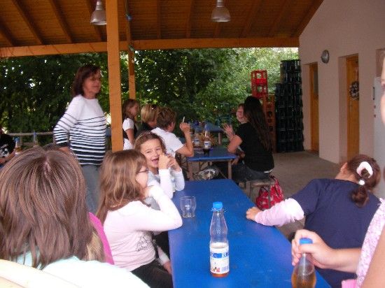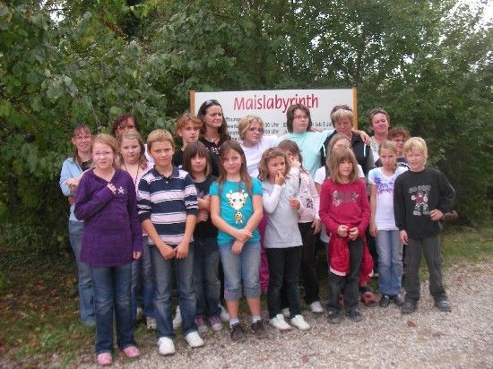 An einer Pferdekoppel wurde die erste Rast gemacht. Die Kinder hatten die Möglichkeit Pferde aus nächster Nähe zu bestaunen. Dann ging es weiter, Ziel war nun das Maislabyrinth in Leimersheim. Hungrig und durstig von der Fahrt wurden die Kinder von Familie Schardt bestens verpflegt. Zu Apfelschorle gab es ein deftiges Schnitzel mit Pommes. So gestärkt begannen unsere Kleinen die Jagd nach den sechs verschiedenen Stempeln die es an versteckten Stationen im Maisfeld zu entdecken gab. Gleich nach dem Betreten des Labyrinthes trennte sich die Gruppe von 15 Kindern, deren Trainerinnen und Betreuerinnen. Jeder wollte als erster alle Stempel auf seiner Karte haben um wieder an den Ausgangspunkt zurück zu kehren.