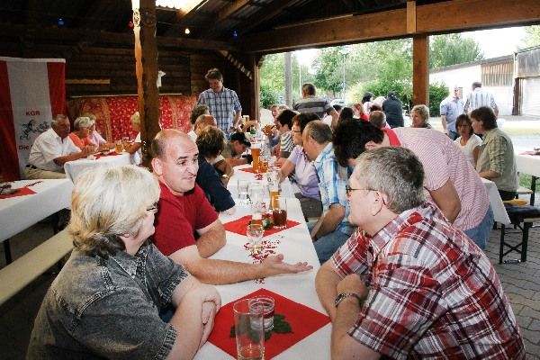 Wenngleich das Rülzheimer Prinzenpaar noch mitten in ihrer Amtszeit sind, luden Simone und Eric zum Feiern ein. Im Vereinsheim hatten sie sich eingemietet und sehr stilvoll zu einem Fest alles arrangiert. Die große Narrenschar wurde mehr als freundlich empfangen und mit tollem kulinarischem Angebot verwöhnt. Natürlich waren die beiden Eltern des Paares voll in den Service integriert. In ihrer Begrüßungsansprache stellten Eric und Simone heraus, dass sie immer ein integraler Bestandteil der Rülzheimer Narren waren und sind, was ihnen das Amt sehr viel leichter werden ließ. Bei ihrer Ansprache deuteten sie an, dass in ihrer Amtszeit doch noch einiges zu tun anfällt. Da ist der Kerweumzug am 31. Juli, bei dem beide auf die Unterstützung der Aktiven hoffen. Am 14. August ist das Volksradfahren, wo beide sich auch eine mächtige Unterstützung wünschen und schließlich das Heimatfest, mit dem Umzug als Höhepunkt, auch da werden alle Aktiven um Unterstützung gebeten.