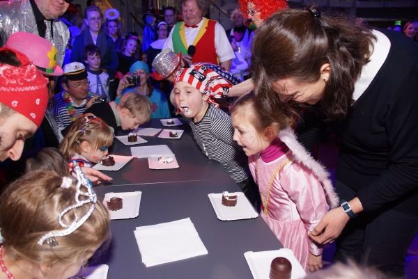 Dem Prinzenpaar war es vorbehalten mit den Kids die lustigen Tänze abzuhalten. Wobei sich Thorsten der Erste und ihre Lieblichkeit Anna Maria die Erste redlich bemühten. Polonaise war ein sehr beliebter Tanz, bei dem man der Prinzessin einfach folgen konnte. Etwas anspruchsvoller war aber der Limbotanz, bei dem man sich doch die Gelenke verrenken konnte. Lustig war auch das Verspeisen der Mohrenköpfe, wo naturgemäß nicht immer alles abging ohne kleine Sauereien, aber Spaß hat’s gemacht.