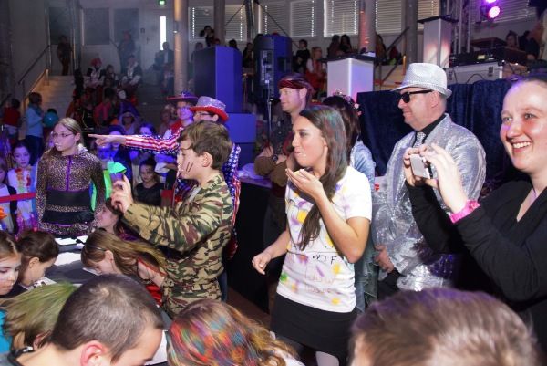 Das Prinzenpaar durfte immer wieder zwischendurch mit Bonbons werfen die Kleinen begeistern und in ihren Bann ziehen. Sportlicher Höhepunkt, war das Tanzen mit Hulla hupp Reifen, wo doch einige Talente zu sehen waren. Selbst unser Prinz konnte mit seinem Hüftschwung überzeugen. Während Anna Maria immer mehr zum Magnet für die Kleinen wurde und sich vor lauter kleinen Fans fast nicht mehr rühren konnte. Ein unterhaltsamer und lustiger Mittag ging gegen 18 Uhr zu Ende und hinterließ viele glückliche kleine Narren.