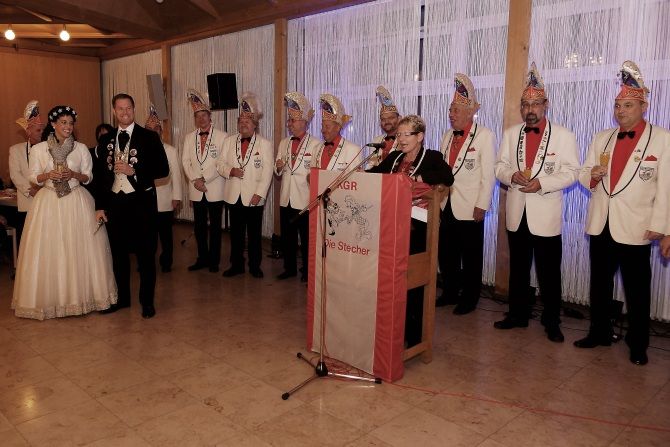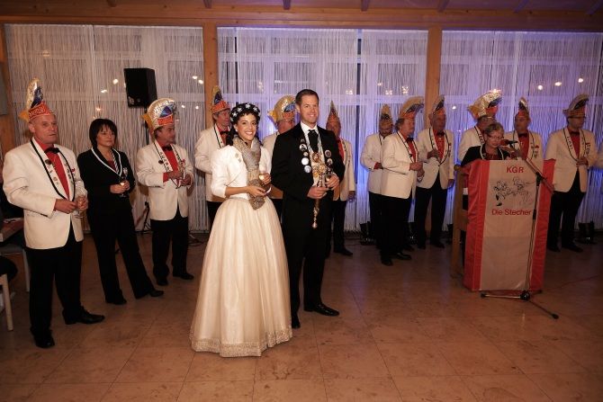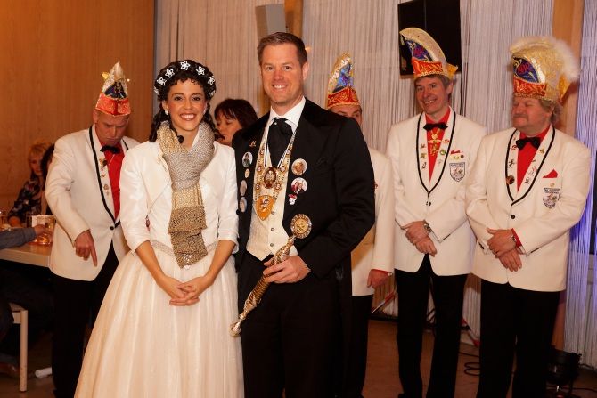 Am Samstag, den 16. November konnte die erste Vorsitzende Yvonne Tüllmann weit über 100 Karnevalisten, darunter auch einige Ehrenmitglieder, im Pfarrzentrum begrüßen und mit einem Sektumtrunk die neue Saison starten. Traditionell eröffnete das noch amtierende Prinzenpaar Anna-Maria I. und Thorsten I. das wunderbar angerichtete Büffet.