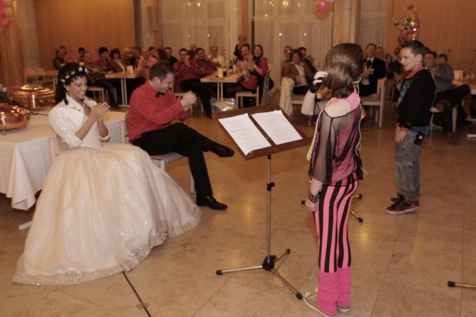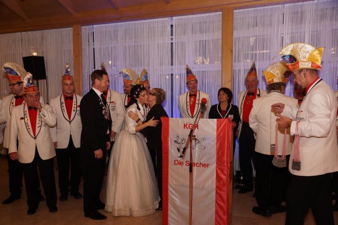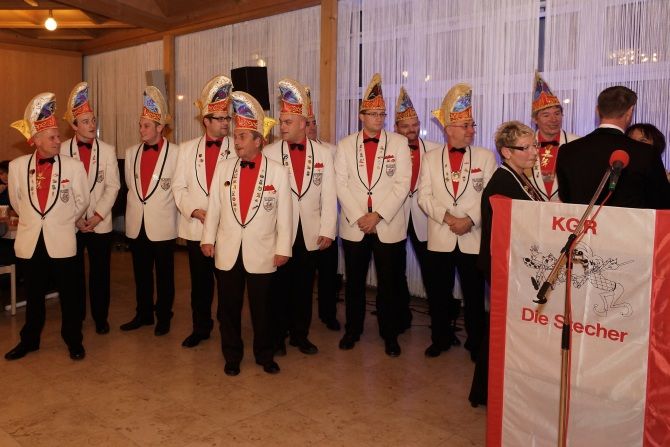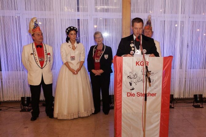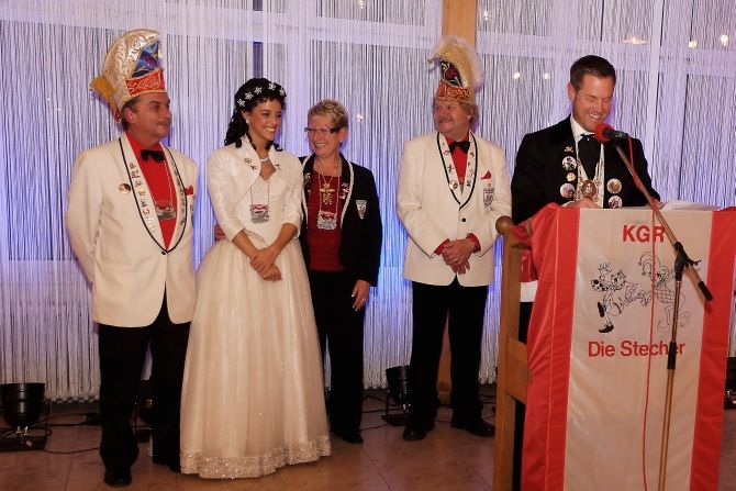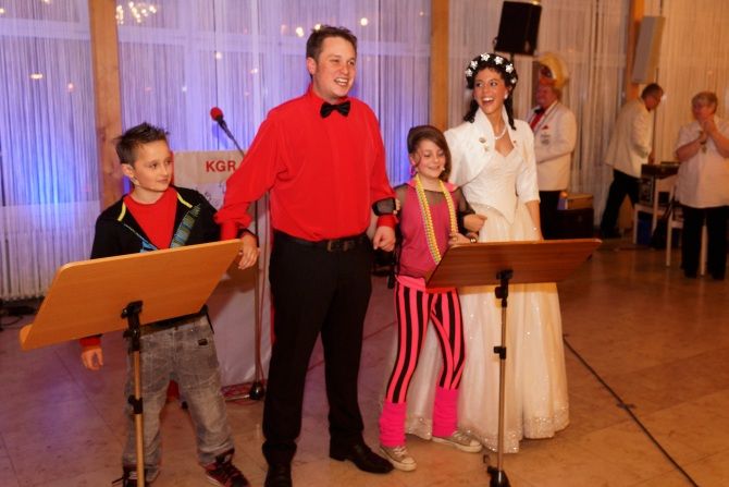Unsere jüngsten Büttenredner Milena und Marwin brillierten bei ihrem Debüt. Diese Rede, die aus der Feder von Prinzessin Anna-Maria und dem Ex-Prinz Sebastian stammt, sorgte für Begeisterung unter den Zuhörern. Gleich im Anschluss bewies Anna-Maria, dass sie in ihre neue Rolle als Ex-Prinzessin spielend hineinzuschlüpfen versteht. Ihre erste Büttenrede überhaupt brachte den Saal zum Toben und sorgte für zahllose Lacher im Publikum. Als „Ronny von drüben“ trat Ex-Prinz Sebastian mit einer hervorragenden Rede in sächsischem Dialekt ans Mikrofon. Lang anhaltender Beifall war sein verdienter Lohn für eine Rede die, genau wie die vorher gehörten, sicherlich auch bei den Prunksitzungen ein Garant für gute Stimmung sein werden.