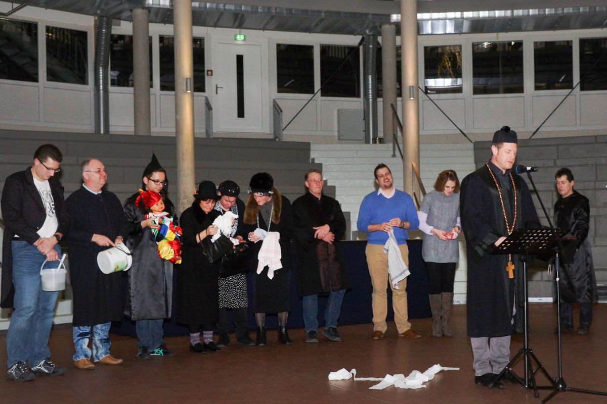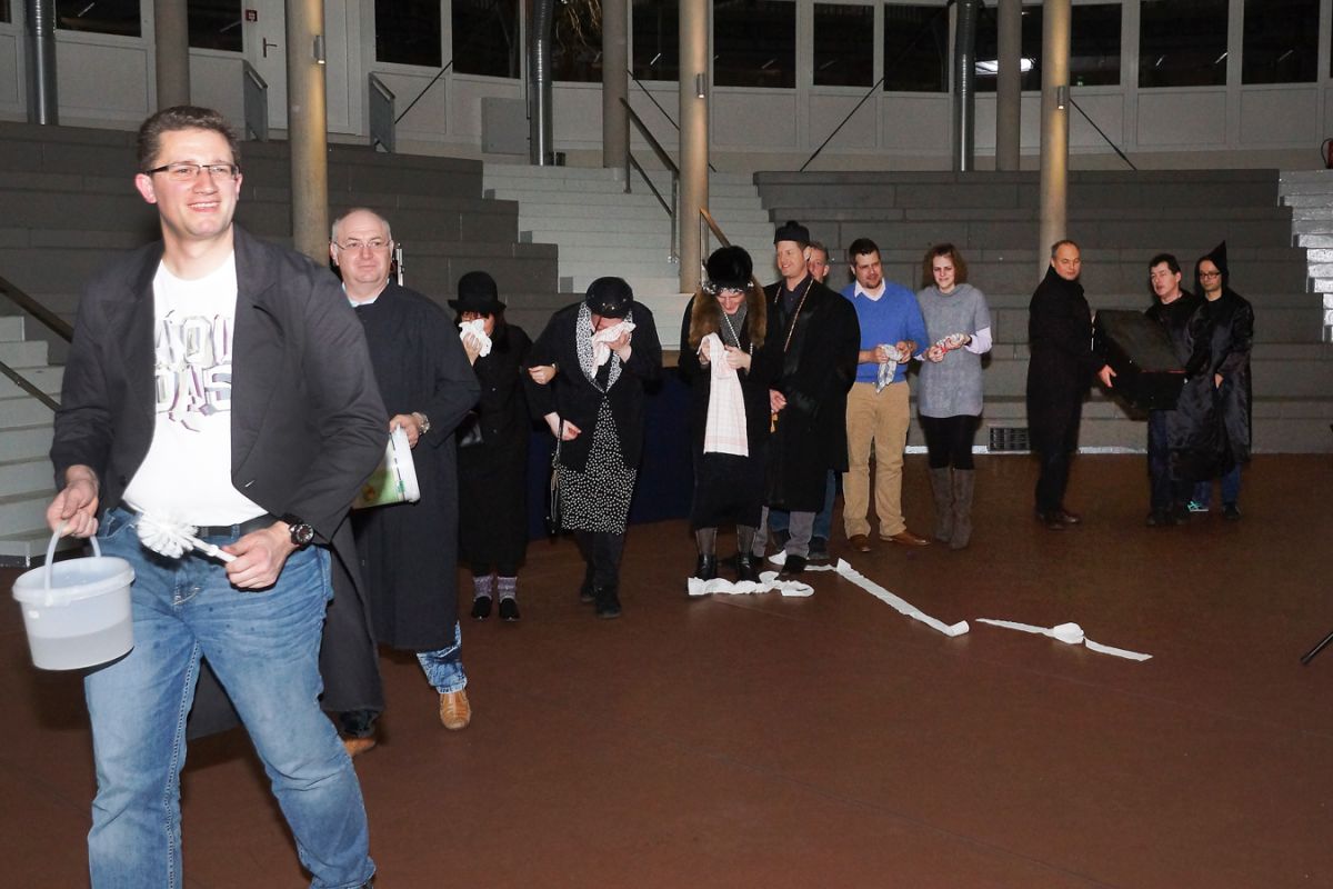 Jeder Narr fürchtet ihn, den schrecklichsten Tag der Fasenacht - Aschermittwoch. Der Tag, an dem die schönste Zeit im Jahr endet und die Tristesse wieder Einzug hält. Am vergangenen Mittwoch gab die KGR, angeführt von Ex-Prinz Thorsten I. als Hoherpriester, ihrem Gott Jokus das letzte Geleit. Unter den Tränen der Trauerweiber und des Prinzenpaares, Manuela II. und Michael II., nahmen die Rülzheimer Narren Abschied von ihrer geliebten Fasenacht. Tief bewegt hielt der Hohepriester Thorsten eine Grabesrede, die die vielen Trauergäste rührte.