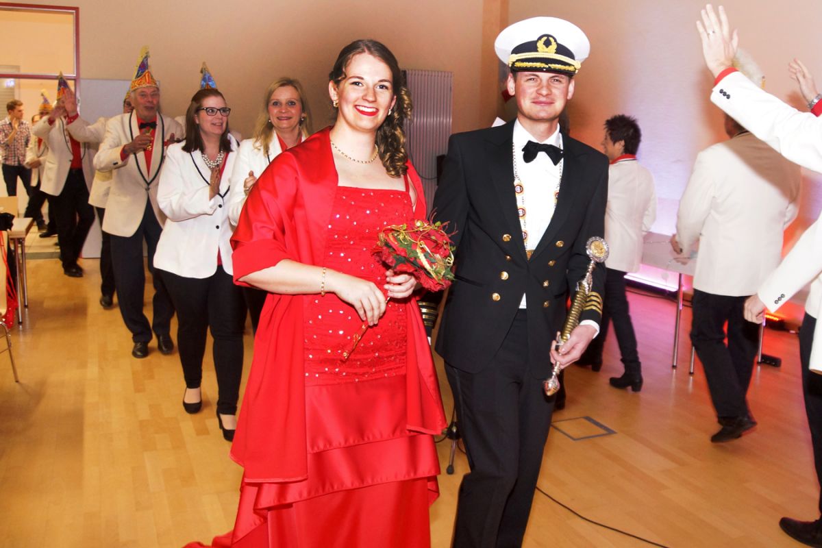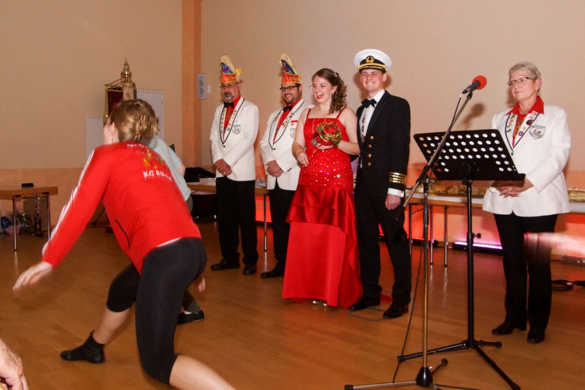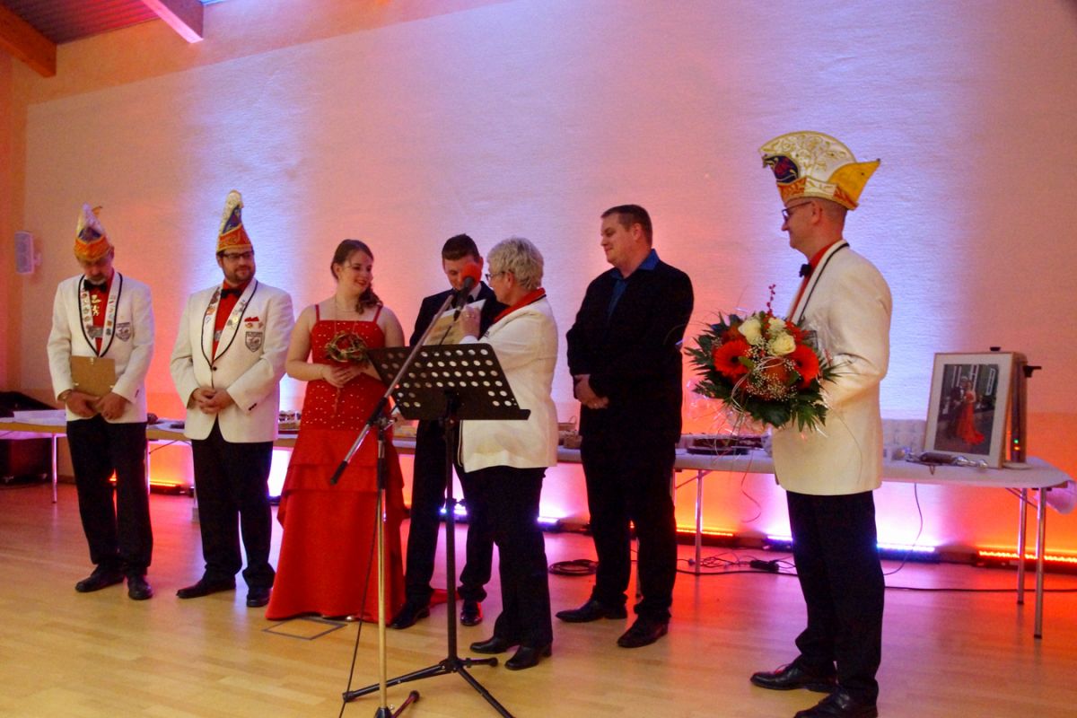 Dann wehte amerikanisches Flair durch den Saal, als Sebastian Hör mit seiner neuen Figur „Donald Trumpel“ in der Bütt stand. Danach präsentierten mehrere KGR-Aktive unter großem Gelächter im Saal ihre Version des „Dinner for One“, das sie schon am Prinzenfest aufgeführt hatten, bevor am Ende Prinzessin Lisa I. und Prinz Manuel I. die Insignien der Macht zurückgaben und ihren wohlverdienten Ruhestand antraten.