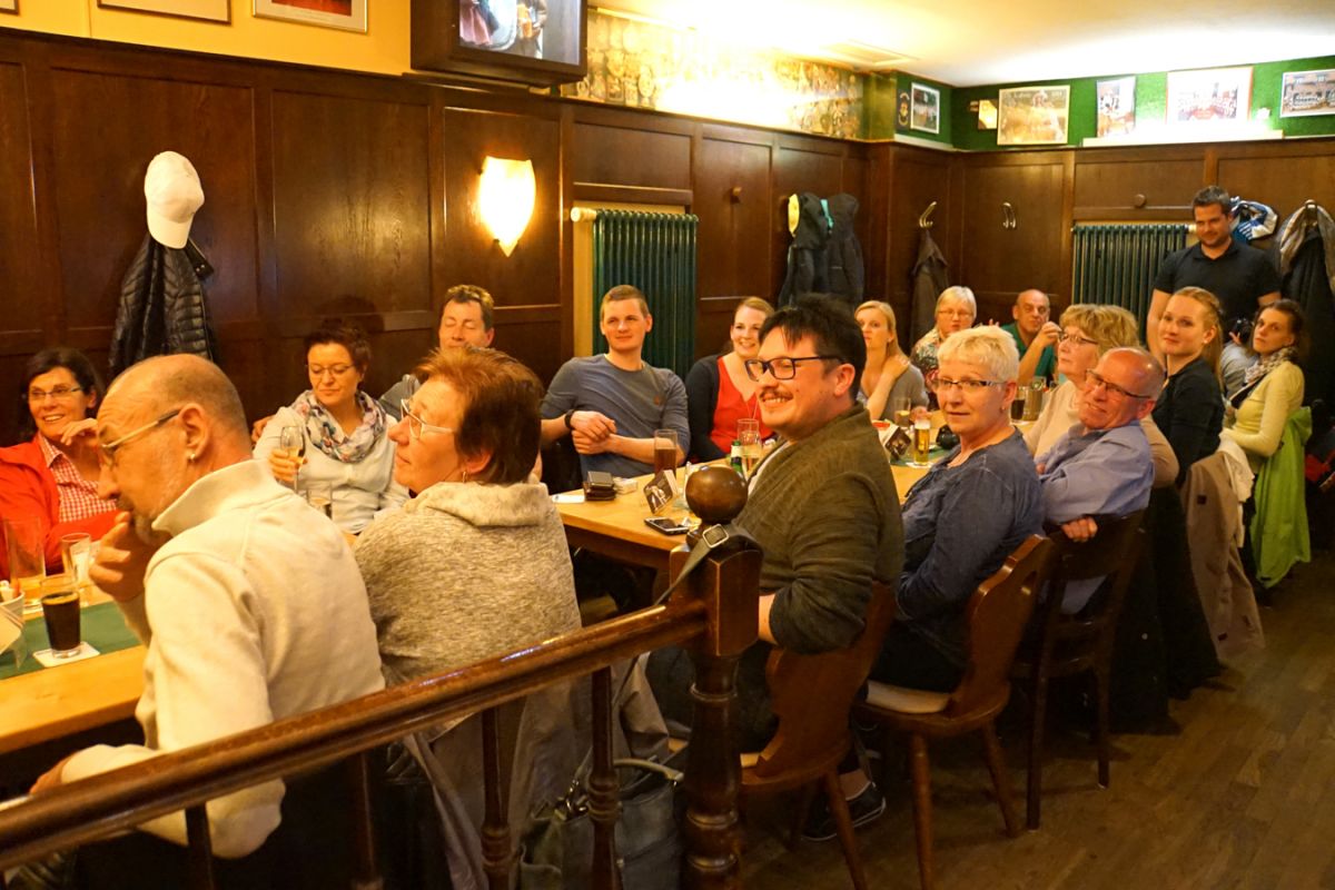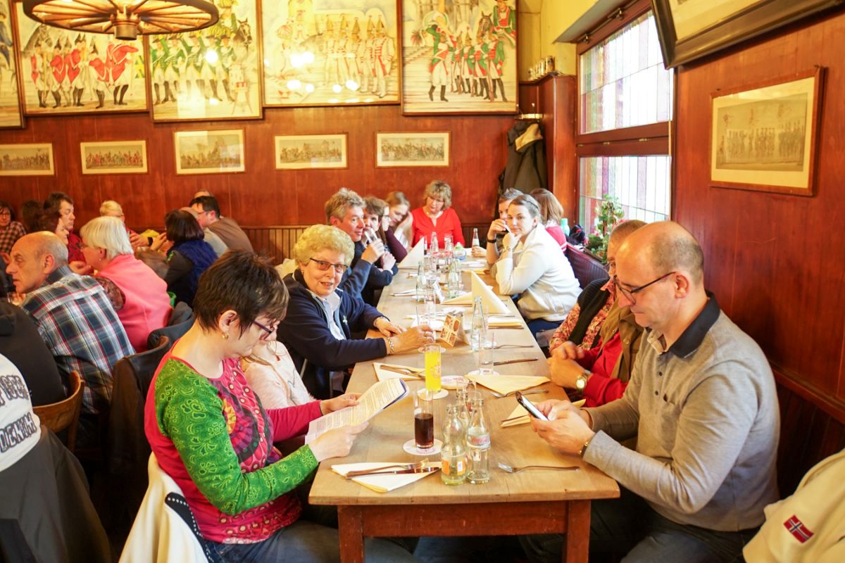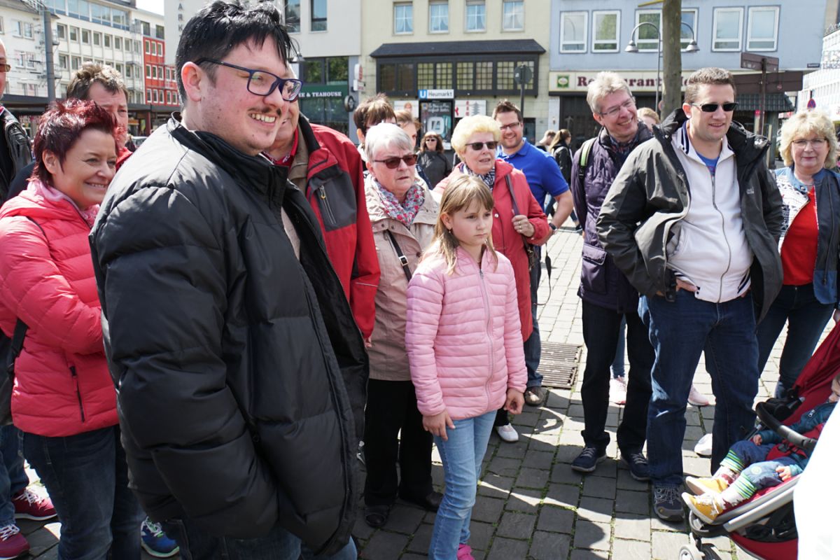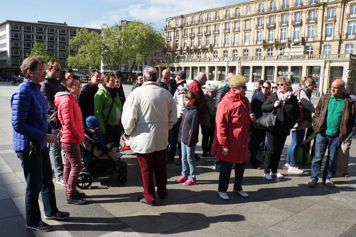Gegen 13.30 Uhr erreichte die Reisegruppe das ibis-Hotel und war nach reibungslosem Check-In bereit, die Kölner Altstadt zu erkunden. Unter der fachkundigen Anleitung des Reiseführers Hans-Georg Paßmann fand sich die Gruppe zunächst am Reiterstandbild am Barbarossaplatz ein und hatte danach mehrere Stunden Zeit, Köln zu erkunden, bevor es am Abend gemeinsam in die Gaststätte ging. Dort konnte die Gruppe die ersten „offiziellen“ Kölsch (inoffiziell hatten viele Gruppenmitglieder bereits während des Stadtbummels Gelegenheit dazu) genießen und echte Kölsche Spezialitäten kosten. Anschließend ging es zurück ins Hotel, wo der harte Kern der Gruppe sich noch einen Absacker an der Hotelbar genehmigte.