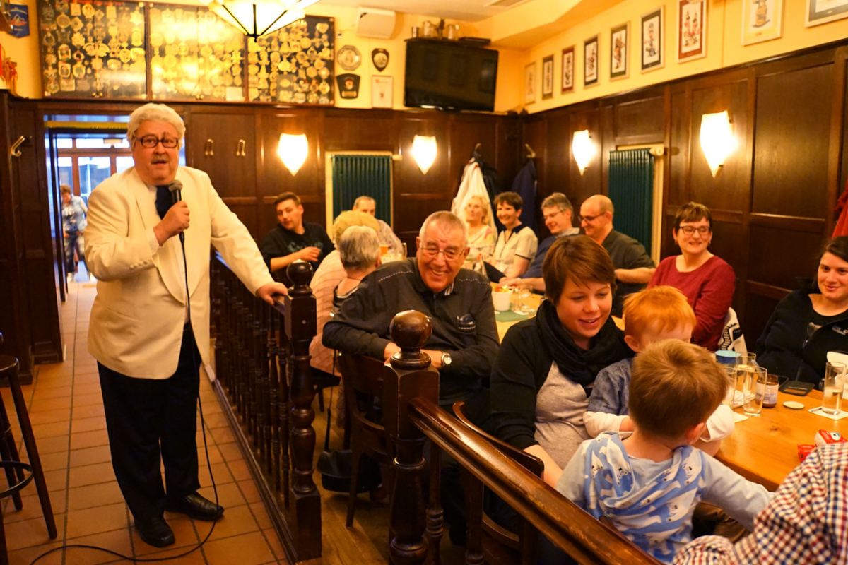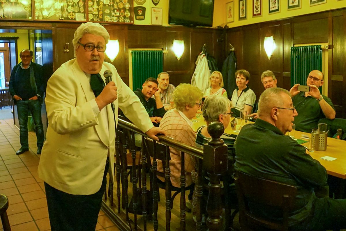 Bei strahlendem Sonnenschein, dessen wärmende Wirkung durch den erbarmungslosen Wind deutlich verringert wurde, machten sich die „Stecher“ sonntags auf, das historische Köln zu erkunden. Reiseführer Paßmann, dem man durchaus eine gewisse Faszination für die Vorsitzende Yvonne Tüllmann unterstellen könnte, referierte dabei fachkundig und lebhaft über die interessantesten historischen Punkte der Stadt und stellte eindrucksvoll seine umfangreiche Kenntnis nicht nur über die Stadt, sondern auch über das karnevalistische Brauchtum unter Beweis. Hervorzuheben ist dabei die halbstündige Pause vor dem Senfmuseum, während der die „Stecher“ die Gelegenheit hatten, eine der interessantesten und belebtesten Kölner Kreuzungen intensiv kennenzulernen. Anschließend folgte eine Flusskreuzfahrt auf dem Rhein, die besonders die kleinen „Stecher“ begeisterte. Einen würdigen Abschluss eines rundum gelungenen Tages bildete das gemeinsame Essen in der Gaststätte „Zum Jan“. Die glänzend aufgelegten Gastgeber lasen den KGR-Mitgliedern jeden Wunsch von den Augen ab und sorgten für einen stetigen Nachschub an Kölsch. Am Ende bekamen die verbliebenen „Stecher“ sogar noch einen Anstecker der Gaststätte. In bester Erinnerung wird aber die „Überraschung“ Paßmanns bleiben: Ein Willy-Millowitsch-Imitator sorgte mit klassischen Liedern des Kölschen Originals, Spontaneität und Wortwitz für überragende Stimmung. Donnernder Applaus, „Zugabe“-Rufe und intensive Schunkelrunden zeugten von der gelungenen Einlage.