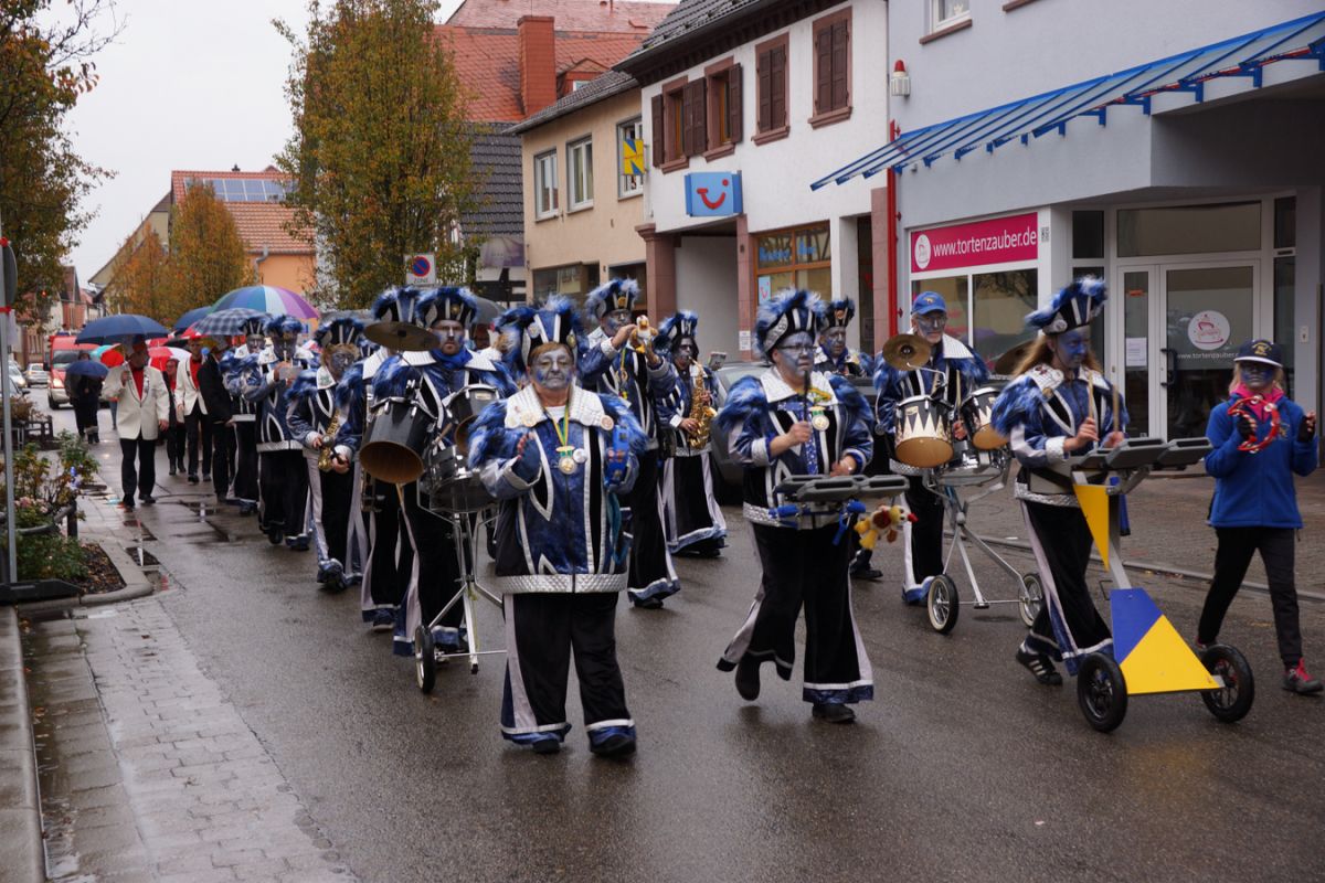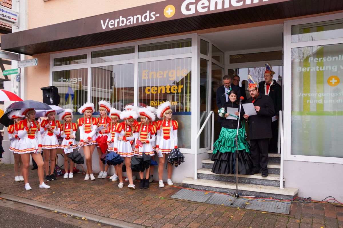 Doch die wild entschlossenen Narren trotzten dem nasskalten Herbstwetter und erschienen zahlreich, um bis Aschermittwoch die Macht im Rathaus zu übernehmen. Sitzungspräsident Michael Haag, der auf einen erbitterten Kampf gehofft hatte, war von der freiwilligen Machtabgabe Hörs „ein bisschen enttäuscht“, wie er augenzwinkernd zugab. Prinzessin Jasmin I. verlas, assistiert von "Ersatzprinz“ Michael Gadinger, das offizielle Regierungsprogramm der Stecher. Ihr Gemahl, Prinz Frank I., wurde krankheitsbedingt per Videokonferenz dazugeschaltet. So soll unter anderem bald eine „Stecher“-Skulptur den Deutschordensplatz zieren und Kuhardt gekauft und eingemeindet werden. Begleitet wurden Prinzenpaar und Elferräte von der Juniorengarde und zahlreichen weiteren Aktiven. Besonderer Dank gebührt den Pfälzer GuggeGlucke für die musikalische Unterstützung sowie der Freiwilligen Feuerwehr, die den Umzug der KGR abgesichert hatte.
