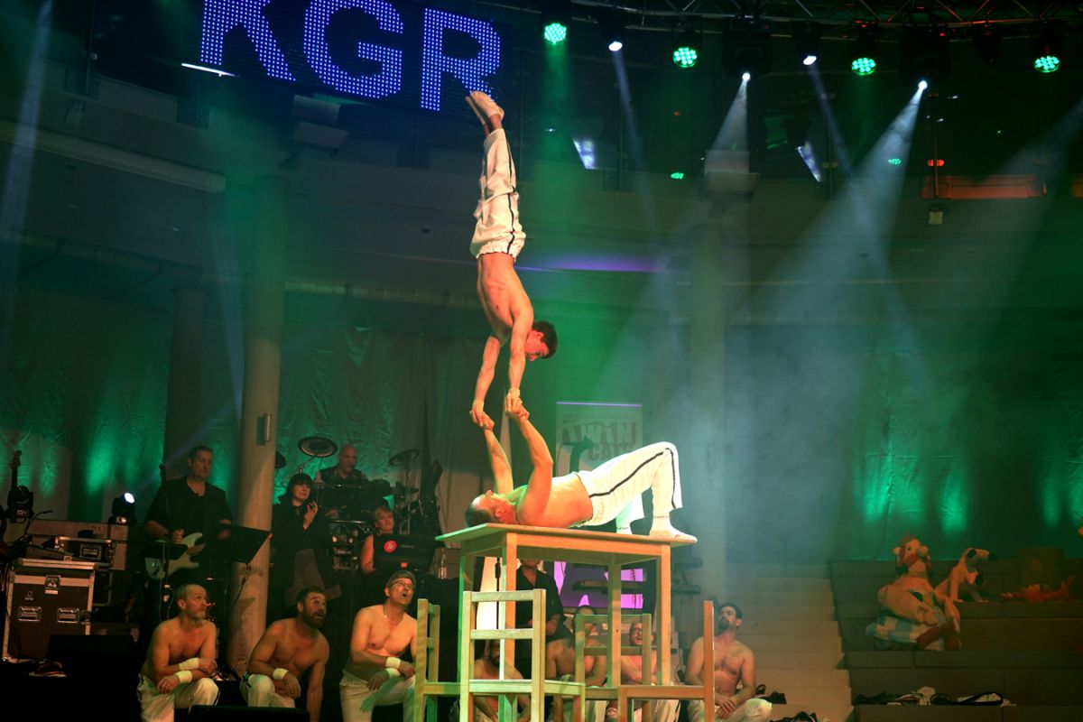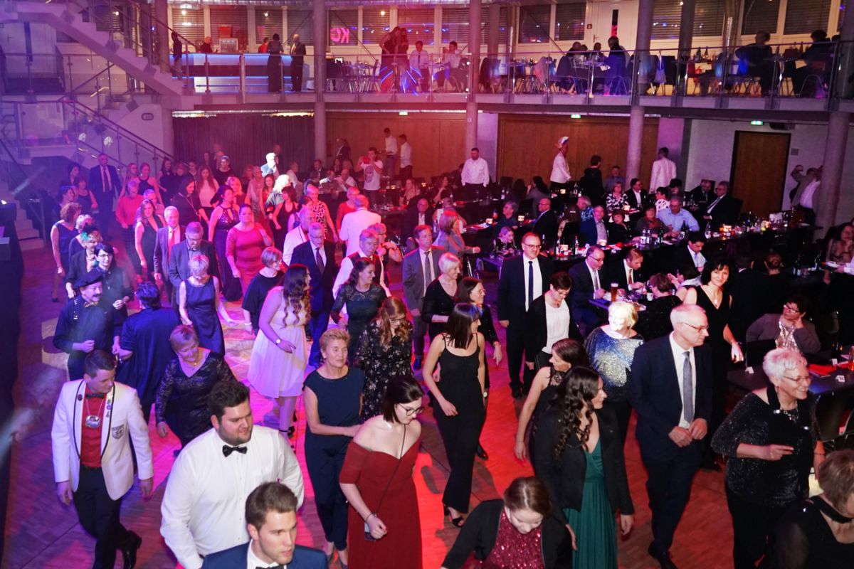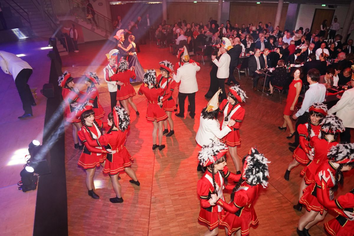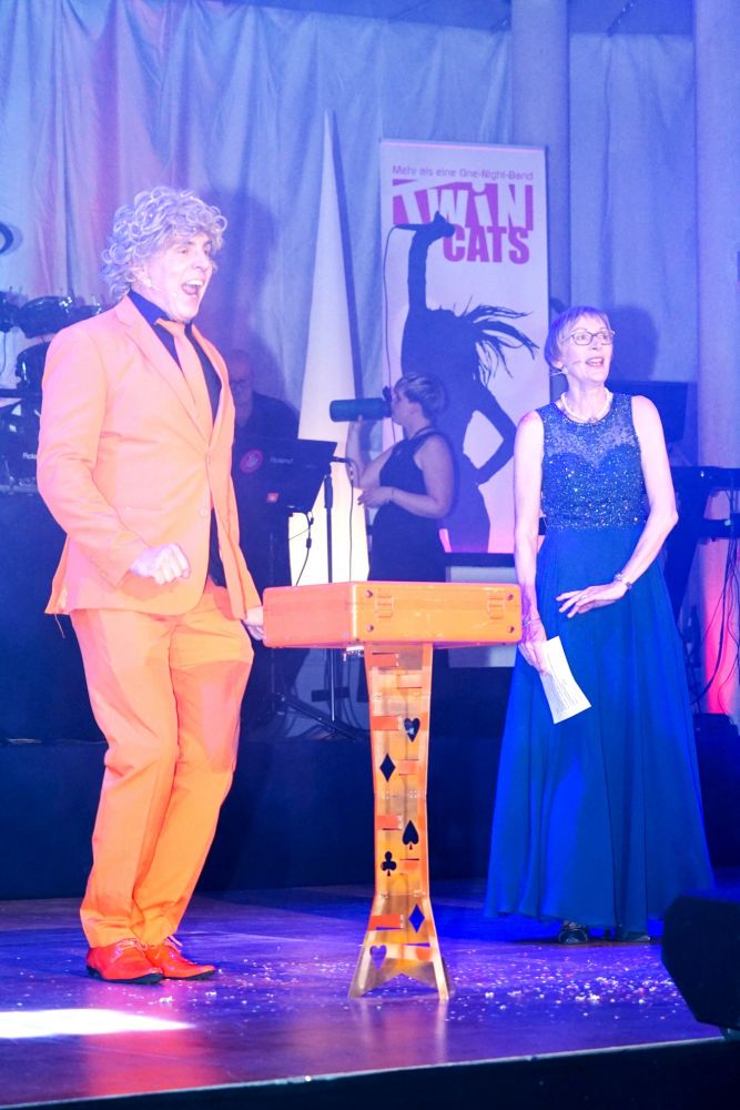 Weiter ging es im Programm mit einer Tanzrunde und Comedian und Zauberer Ted Louis, der die Lachmuskeln der Gäste forderte und alle mit seinen Tricks in seinen Bann zog. Akrobatisch folgte die Turnerriege der TSG Jockgrim, die sich mittels Stühlen in waghalsige Höhen vorwagte und manchem Gast sicherlich den Atem stocken ließen. Das Männerballett der KG rot-weiss Lohsheim be-endete den Showteil des Abends mit seinem Tanz „Nomaden - Eine traumhafte Reise zu den Göttern“ Danach hatten die Gäste ausreichend Gelegenheit sich auf dem Parkett auszutoben oder sie ließen die Nacht in der Bar langsam ausklingen.