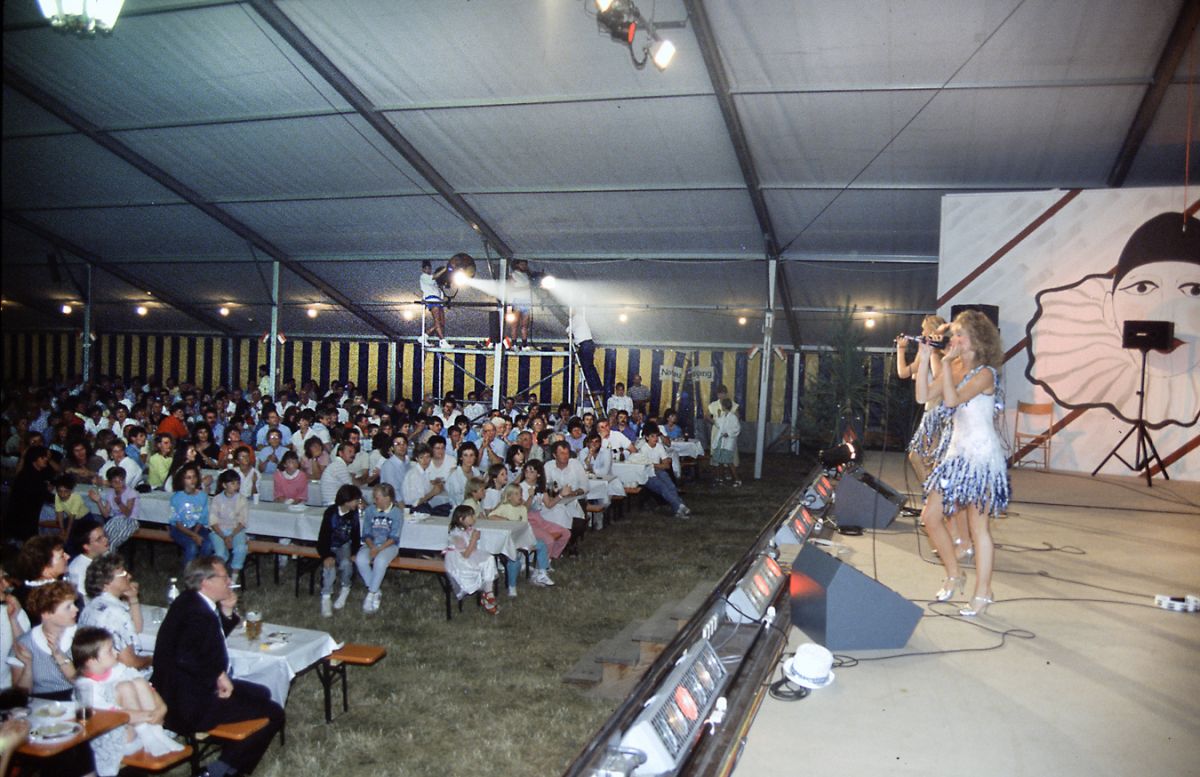 Der eigentliche Höhepunkt des Abends kam mit Botho Lucas und den Euro-Cats. Der bekannte Chorleiter begleitete die Gesangsgruppe am Synthesizer. Die Stimmung die von diesem Gesangsquartett ausging lies auch den letzten begeisterten Zuhörer im Zelt vom Platz aufstehen. Mit Liedern von ABBA und den Beatles sprachen sie mehr die jüngeren Gäste an. Mit Evergreens von Glenn Miller jeden im Zelt. Die ausgeprägte Stimmenausbildung der hübschen Damen wurde ganz deutlich bei ihren A-capela Vorträgen. Dem Publikum gefiel ganz besonders die unkomplizierte und frei von jeglichem Allüren gezeigte Volksnähe. Auf den Tischen der Gäste tanzten und sangen sie sich in die Herzen der Zuhörer. Die gezeigte Show lies erkennen, dieses Quartett hat Erfahrung gesammelt bei Fernseh und auf großen Bühnen. das Zelt brodelte und die Euro-Cats wurden gefeiert, als Meisterinnen der Stimmungsmache.