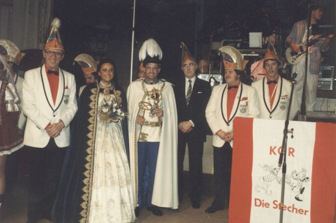 Seine Königliche Hoheit und Jubiläums-Tollität, Prinz Burkhardt I. - Max - Fürst zu Mauritiusburg, jetzt auch Maxburg genannt, Herzog aus dem uralten Adelsgeschlecht derer von Müller-Fischer, Tennisbaron und Botschafter der Lederhosen-Fürsten des Bayrischen Polter-Königs Franz-Josef dem Starken, dessen Groß-Konsul in der Pfälzischen Kolonie zwecks Einführung bajuwarischer Sprache und Gebräuche und Chef des weltweiten Imperiums Inter-Max-Schmuck und Ihre Königliche Lieblichkeit Prinzessin Hiltrud I, Fürstin zu Maxburg, Freifrau derer von Müller-Fischer zu Schuhladen, Ex-Botschafterin der Mode-Hochburg Kö 42 zu Landavia, südländische Schönheitaus dem exotischen Rathleichesheirn am Moby Dick See, Geliebte des bayrischen Großkonsuls und Chefs des Schmuckimperiums Inter-Max heißen die neuen Regenten, die im Rahmen des Krönungsball der Karnevalgesellschaft Rot-Weiß Rülzheim "Die Stecher" im Freizeithaus die Macht in der Sozialgemeinde übernahmen