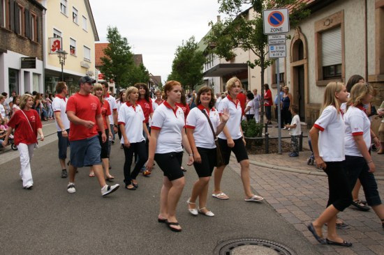Angelangt auf dem Kerweplatz erhielt jeder Teilnehmer ein frische Brezel vom Bürgermeister, Dankeschön. Selbiger wurde wieder einmal zum Hauptakteur beim Bieranstich. Genau 4 mal 11 Einzelhiebe ließ der Schultheiß auf den Hahn des Bierfasses nieder, bis sich der Großteil des Fässchens sich auf den Boden ergoss.