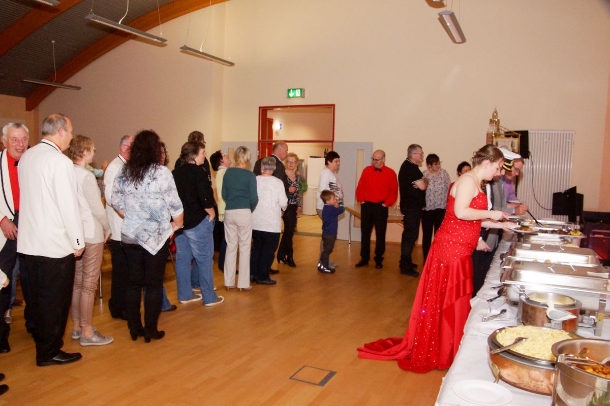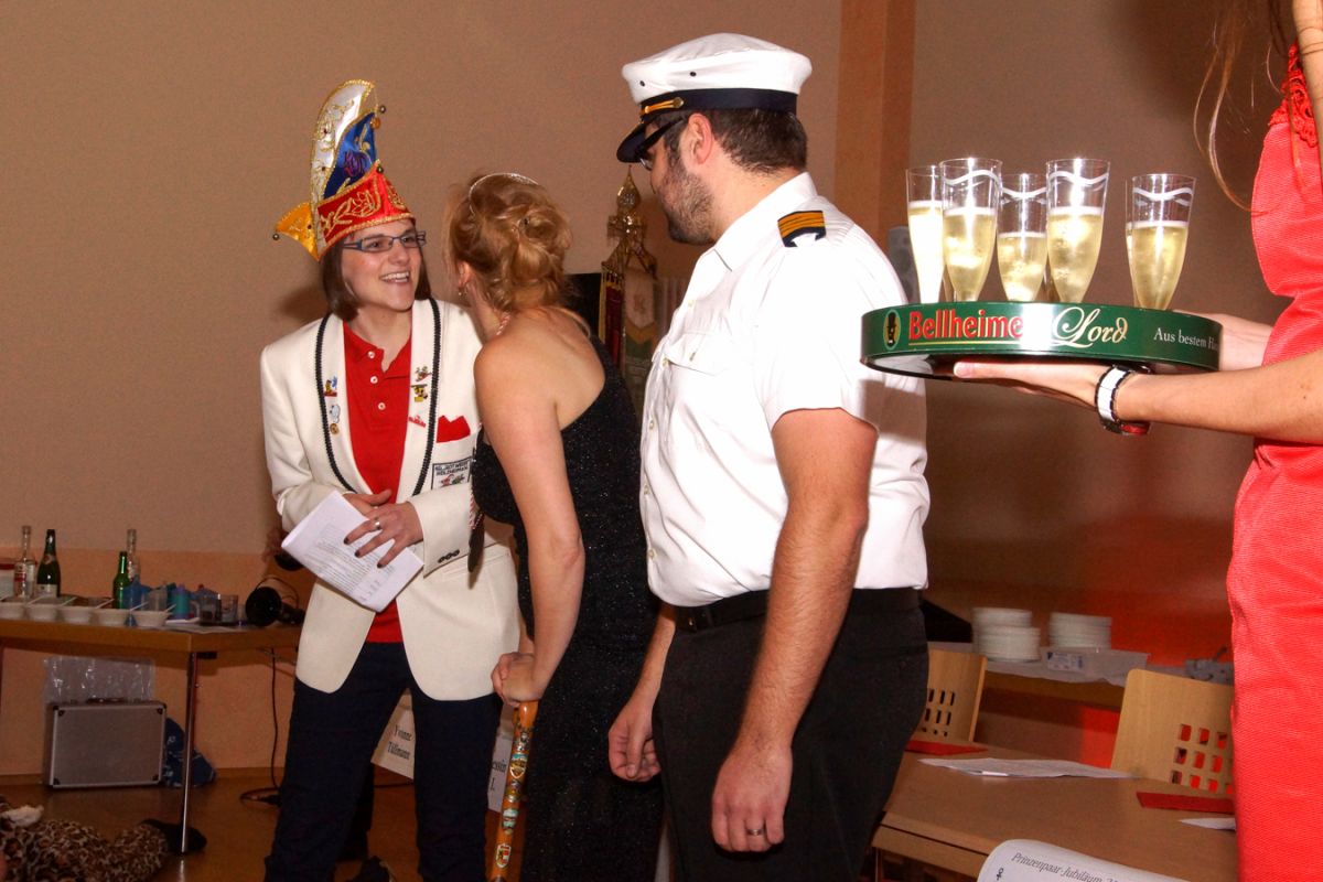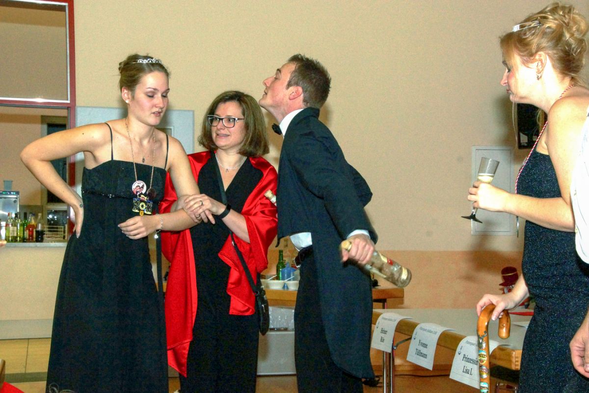 Dann wehte amerikanisches Flair durch den Saal, als Sebastian Hör mit seiner neuen Figur „Donald Trumpel“ in der Bütt stand. Danach präsentierten mehrere KGR-Aktive unter großem Gelächter im Saal ihre Version des „Dinner for One“, das sie schon am Prinzenfest aufgeführt hatten, bevor am Ende Prinzessin Lisa I. und Prinz Manuel I. die Insignien der Macht zurückgaben und ihren wohlverdienten Ruhestand antraten.